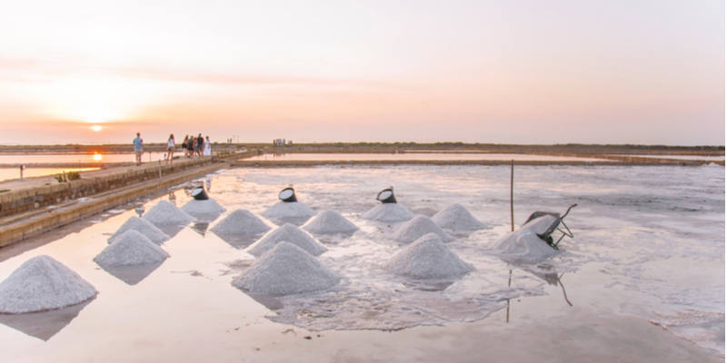 Conosciuto ed esportato in tutto il mondo sin dal Settecento, il Marsala è un vino liquoroso che nasce nei dintorni dell’omonima cittadina siciliana. Sapevi che la preparazione del Marsala può prevedere l’aggiunta di alcool etilico (o acquavite di vino) e di mosto cotto, concentrato o fresco? L’itinerario che si snoda attorno a questa eccellenza tocca la provincia di Trapani, la Laguna dello Stagnone, Mozia e le Isole Egadi. La città di Trapani, nota per le sue saline, è posta fra due mari ed offre notevoli spunti naturalistici e culturali. Ammirane i palazzi settecenteschi, le chiese e la caratteristica Piazza del Mercato del Pesce, anticamente chiamata Bocceria. Un posto che non puoi assolutamente perdere è la Laguna dello Stagnone. Luogo magico da visitare al tramonto.