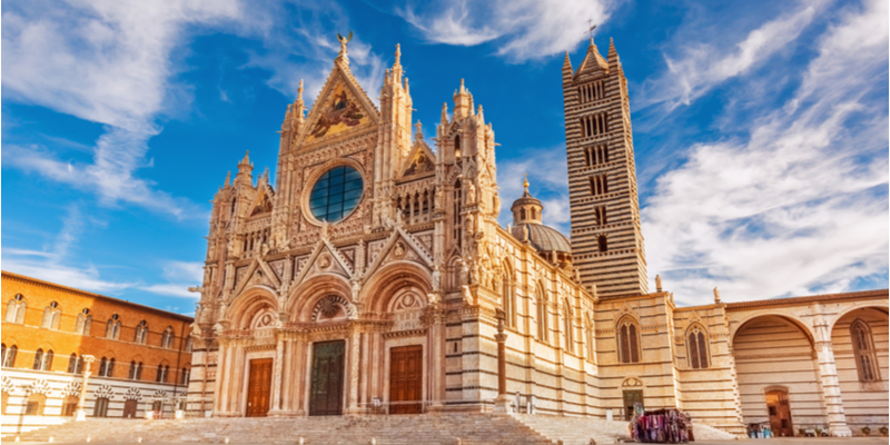 Non fate come gran parte dei turisti di passaggio per Siena: non limitatevi a vedere Piazza del Campo, Palazzo Pubblico e la Torre del Mangia! La Cattedrale dell’Assunta, capolavoro del romano-gotico italiano ubicata al centro di Piazza Duomo (proprio sopra Piazza del Campo) è un luogo di una bellezza sconvolgente! Già solo la facciata in marmo bianco vi lascerà senza parole. Entrando, dalla cupola, alle volte agli archi della navata centrale, passando per il pavimento intarsiato (per esigenze di conservazione parzialmente ricoperto da un tavolato in prossimità del presbiterio) fino alla meravigliosa Libreria Piccolomini; non c’è metro quadro di questa chiesa che non racconti la meravigliosa storia cittadina. Oltre alla Cattedrale, del complesso del Duomo fanno parte anche la Cripta, il Battistero ed il Museo dell’Opera. Un itinerario bellissimo ed assolutamente imperdibile!